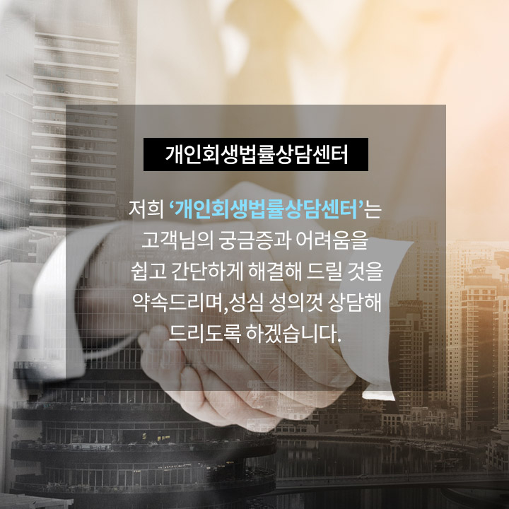 개인회생 전문으로맡고계시는 법무사분에게 상담받고싶습니다... |